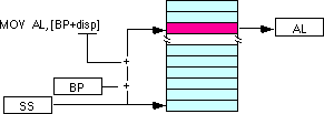 if bp contains 2020h, mov dh,1000h[bp] will load