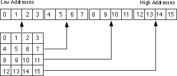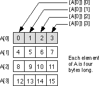 yields 16 bytes, the number necessary for a 4 x 4 array. Of course, to reserve