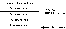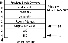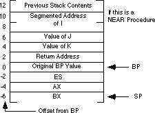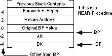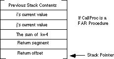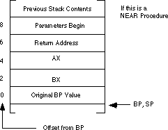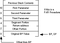 the parameters from the stack. The stack contents when calling a far procedure are shown below: