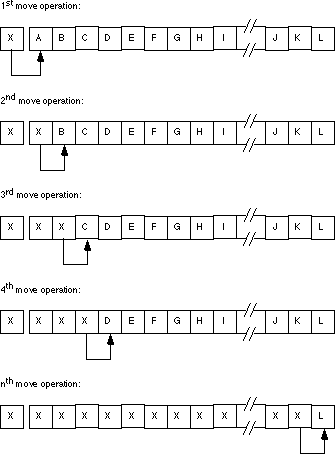 the source and destination blocks overlap. Consider what happens in the