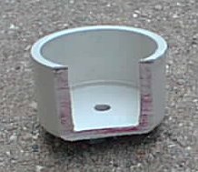 - Drill a hole in the endcap suitable for the 5/16" bolt. With the side cut off and hole drilled it should look like thus: