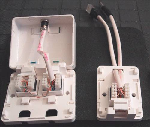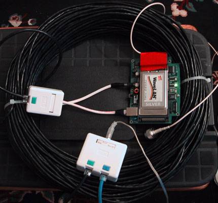 A number of Access Point manufacturers (Lucent, Symbol) are now offering Power over Ethernet add-on's for their Access Points. A PoE module inserts DC voltage into the unused wires in a standard ethernet cable (pairs 7-8 and 4-5). The idea is to supply the AP's power and UTP ethernet connectivity requirements via a single ethernet cable. This works great in areas where you may not have power and/or ethernet easily accessible, like a roof. This also allows you to more easily place the AP closer to the antenna, thus reducing signal loss over antenna cabling. Ethernet signal travels well over CAT 5 cable; 2.4ghz signal doesn't do as well over antenna cabling. Also ethernet cabling is much cheaper than antenna (LMR-400) cabling. There are currently two types of PoE adapters: a module jack or hub-like device for multiple access points. The following hack creates a simple PoE module pair.