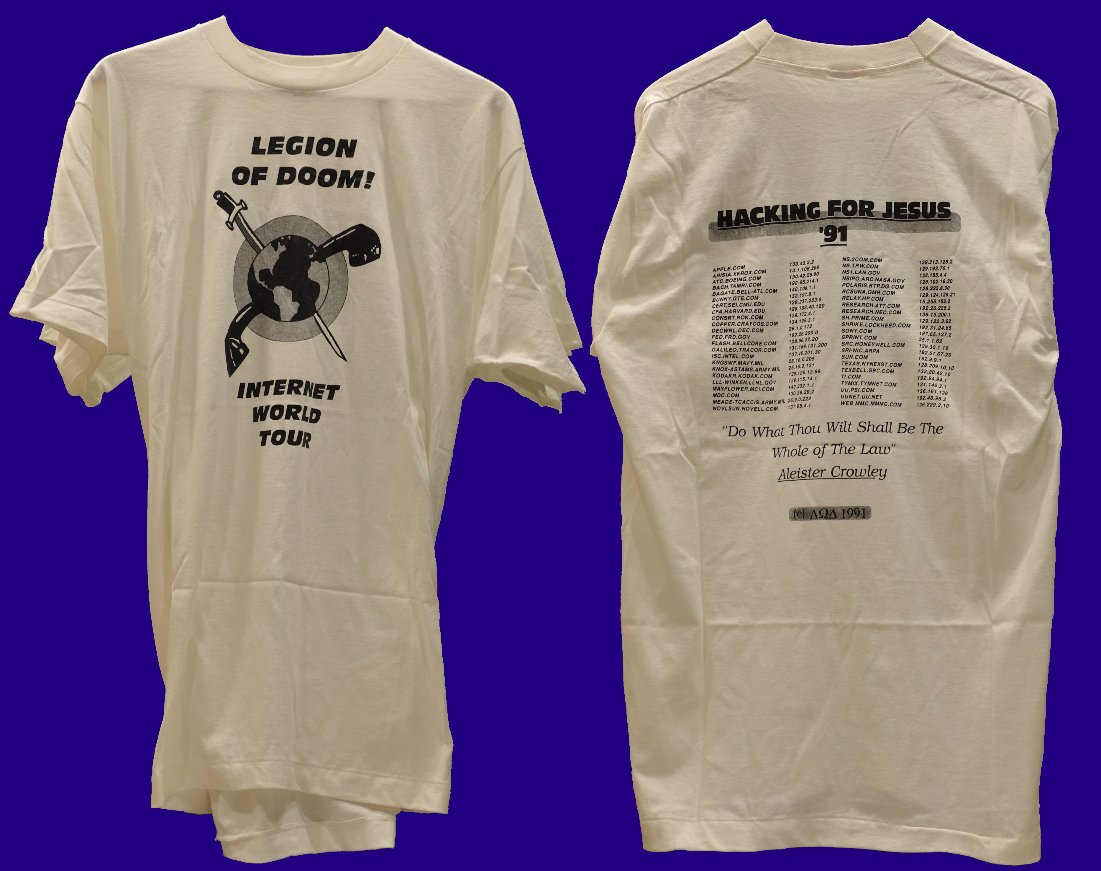 Erik Bloodaxe, editor of Phrack Magazine, remained at the podium and exhibited he "Hacker Wars" T-shirts that were available in the rear of the conference room. He also mentioned that he was going to produce a second run of the coveted "Legion of Doom - Internet World Tour" T-shirts from 1991. He then demonstrated equipment that is part of an emerging technology.