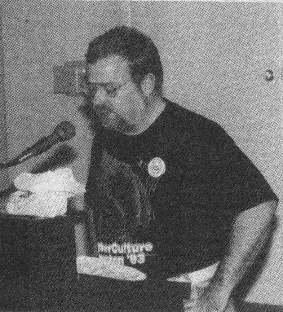 The conference eventually got underway, and after an introduction by Jesse, the first speaker approached the podium. This was Bruce Sterling, author of The Hacker Crackdown: Law and Disorder on the Electronic Frontier. Mr. Sterling's book is perhaps one of the best works describing the sociological aspects of the goings on in cyberspace. Unlike other authors, he paints a compelling picture of the human side of the computer underground.