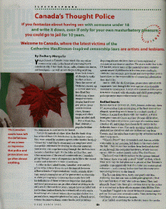 Welcome to Canada, where the latest victims of the Catharine MacKinnon-inspired censorship laws are artists and lesbians.