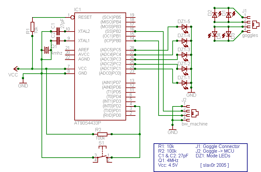 Circuit Diagram Construction Hmmm, they look kind of silly. But that's not the point, we're here to explore the phenomenon of biofeedback, not for a fashion show. Browse the Brain-Wave Machine Image Gallery for pictures of readers goggles as well as modifications and variations. Programming and Software (Code is the essence of everything.)