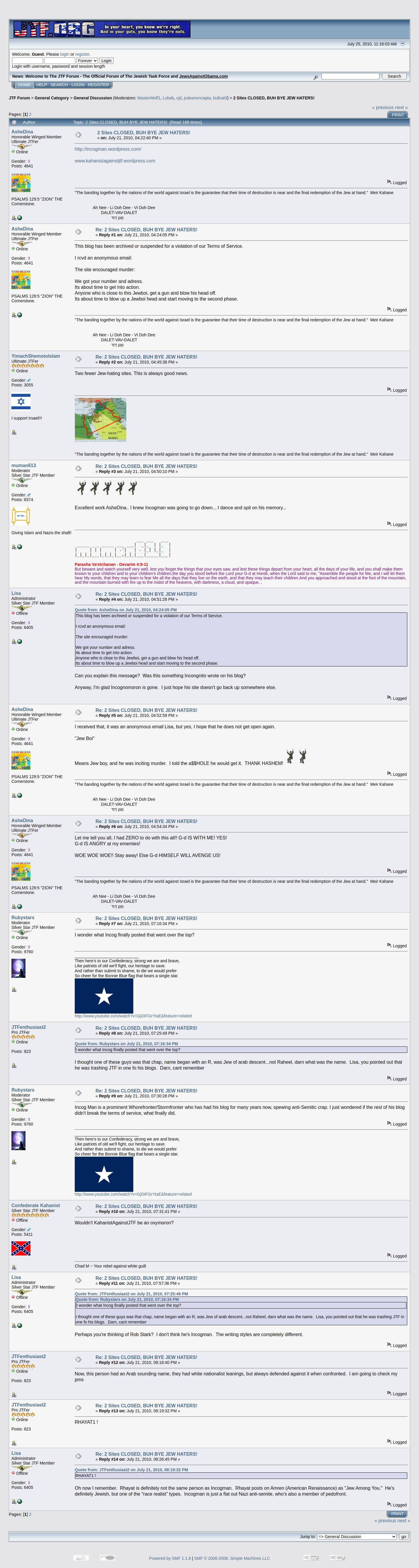 - 2 Sites Closed, Buh Bye Jew Haters! Website of the "Jewish Task Force," a Jewish supremacist organization which lurks around the Internet and tries to censor websites which expose Jewish criminal networks. "AsheDina" is really (((The Mad Jewess))).