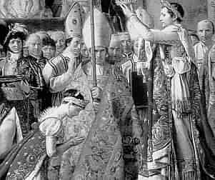Napoleon crowning his wife, Josephine, at their joint coronation as Emperor and Empress of France.