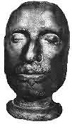 The death mask of Oliver Cromwell, the commoner who rose to become the head of the English state after the abolition of the monarchy in that country in 1649. He was offered the crown, but turned it down, preferring to keep England as a "commonwealth". After his death the monarchy was restored.
