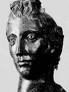 Bronze head of the Celtic Goddess, Rosmetra, wife of Mercury. German sculpture, circa 250 BC.