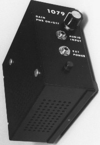 The 1079 is a one watt power amplifier designed for use with a preamplifier, such as the 1059, or stethoscope amplifier, such as the 4020, 2049M or 2047U/C. It is powered by either the internal 9 volt battery pack or the external AC adapter (supplied). OPERATION: Connect the AUDIO INPUT jack to the audio source via a suitable interconnect cable. Adjust the GAIN of the 1079 and preamplifier or stethoscope as desired. Use the AC adapter for external power. Make sure the 220/110