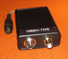 ![]() The 1080H-TDR pulser is used in conjunction with the 1080H MKII for dual line measurements. Plug the DIN plug into the DIN jack on the back of the 1080H MKII analyzer. Connect the BNC jack to the B input on the oscilloscope. Follow the instructions for TDR measurements as out lined in the manual for the analyzer. Always synchronize the oscilloscope on channel A.