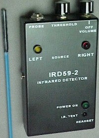 The system consists of the detector assembly, IR probe with detectors on two sides that are covered with an IR Wratten filter, probe extension cable and headset. The detector contains an integral I.R. TEST led that transmits a 1,000 hertz tone for testing the system. One 9 volt and one 1½ volt "AA" alkaline battery power the unit.