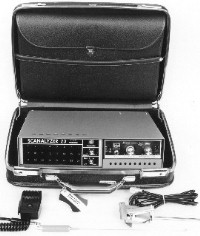 ![]() The Mason A2 and A3, CEI RS-111 and Microtel countermeasure receivers were simply too expensive for most nonfederal customers. The 6060 was developed to provide a low priced alternative to these products. In spite of its simplicity it had some interesting features. A Sprague 610 Interference Locator was modified with a wide band I.F. to drive a Heathkit spectral display. The unit also included a sub-carrier demodulator. The most unique part was the 6060UHF high frequency down converter. It contained an adjustable 200 MHz comb generator and 5 GHz mixer that took the entire 5 GHz down to 200 MHz in 200 MHz chunks! ![]() The Texscan AL51 proved to be a ready replacement for the 6060. Some modifications were made in the hopes some potential customers would buy it from me. Its nomenclature was the 6060C. I supplied it with the antennas from the Sprague 610 and a 1079 audio power amplifier. The Texscan analyzer was later replaced by the Avcon PSA65C. ![]() In the early 70s I was asked by a State Police agency to produce my first hostage phone, the 7080. It used rotary dial telephones because at that time dial telephones would work both on dial and tone lines but touch-tone telephones would not work on dial lines. It came with a bunch of wire, connectors and clips to meet virtually every situation. The 7080 has been battle tested at many prison riot and hostage situations. The latest version still looks the same but it contains up-to-date technology. ![]() During the "hay days" of my business, people were bugging (pun) the heck out of me for a simple telephone line test. The LTS-4 answered most of their concerns. It measure line voltage and loop current and line audio. Didn't sell that many but it worked and looked neat. ![]() Talk about an old timer. This Lafayette hybrid (tubes and transistors) receiver filled the temporary gap between fully tube and fully transistor receivers. It had very good sensitivity and a wide-band I.F. Shown with it are the BT50 body transmitter (50mW), RT5 room transmitter (5mW) and TT5 telephone transmitter (5mW). During the "hay days" of the business I produced thousands of the little units. They were self-excited (no crystal) but stayed close to their 42MHz frequency once installed.