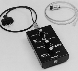 TO OPERATE: Connect the appropriate cable to the input jack. Insert the headset. Set the band selector switch to the 100-700 KHz range.
