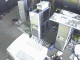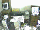 The place is kind of a mess, so it's hard to give you a good look (not to mention all the classified things that I'd have to edit out), but I'm thinking about a DOOM-style game based in real video from our home.. you get to have the fun that I have every day doing things like trying to make it around the wires and from one side of the room to another. I might even put the 7-11 and the bowling alley in there. Of course, I need to get a T1 first, but I'll make something out of whatever I can get. Keep watching.