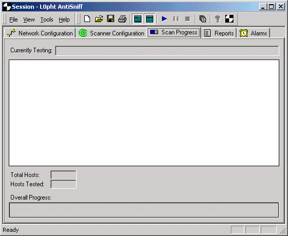 Scan progress may be monitored on the "Scan Progress" tab. The machine being scanned is identified at the top of the tab as "Currently Testing:". Text messages are displayed below this, indicating what tests are run, what phase of the test they are