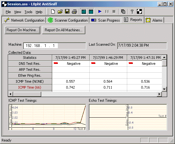 rvice. For further details on the Echo test itself, see the Network and Machine Latency Tests section of the <a href="http://www.l0pht.com/antisniff/tech-paper.html">AntiSniff Technical Overview</a>.