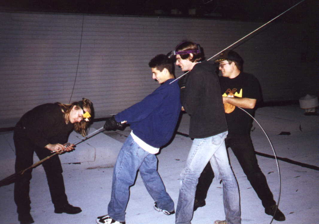 Notice that darkness has fallen yet the l0pht crew continues to work until