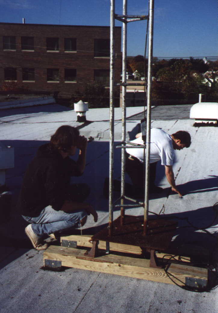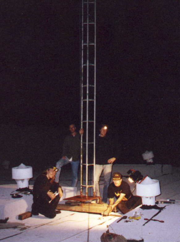 Guying the tower is one of the most critical tasks. We guyed each opposite