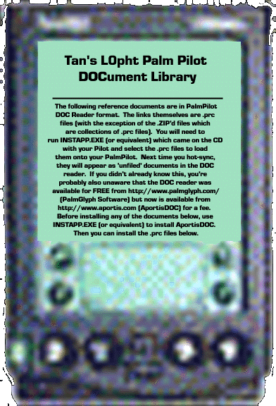 maintain NT, I converted these files (version 2 - 10/25/97) over to PalmGlyph DOC reader format (purchased later