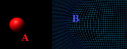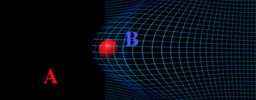 Referring to this illustration of space/time distortion below, lets assume the red ball A, can generate a strong gravitational field and lens that gravitational field or wave in this case. Lensing a strong wave is sufficient to shoot a vector in any direction and therefore distort space-time in its path. But to define a point in space-time and bring that point to the gravity source, essentially compressing the space-time between A and B, then the Red ball would need at least 2 or 3 separately generated gravity wave vectors. This is due to the need to triangulate the three synchronized lensed beams of gravity to a distant point where they intersect. One example of a triangulation program that uses separate but synchronized vectors exists in the 3D motion capture industry which we use to do feature film effects. Another example is seen in sound based programs that can detect the exact point of origin of a sniper's position simply by listening to the gunshot from three to six different microphones. When we generate and intense gravitational field, we can distort the space/time and in turn the distance between the point where we are and the 'point' where we want to be. We can then position ourselves at the point where we want to be, a very small move at this stage, and then stop generating the gravitational field...allowing space/time to return to it's natural form. We would now be at that new point, still millions of miles from where we started an instant ago.