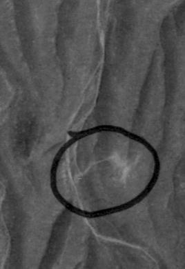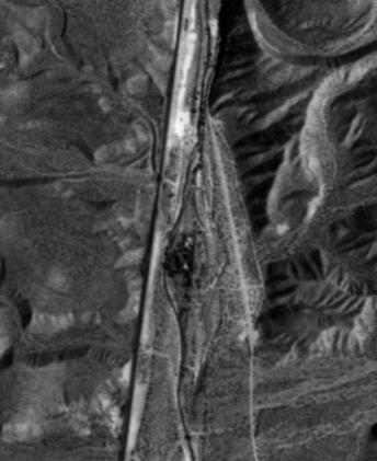 The next few months were spent pondering and collecting more photos, covering literally hundreds of square miles. A spot I had noted on the edge of one of the first photos intrigued me. It was some sort of scar in the natural vegetation on the desert. It might have been caused by fire, but it didn't spread out like fire would, it was more linear (it was about 150' wide and 1,200' long). It was too wide to be any sort of firebreak, and it ran at right angles to the natural ravines in the vicinity. And it was about 69 miles from Groom, close to the magic 70 mile figure. But what was it? I was slowly getting smarter, and rather than run out and look at it, I ordered more photos to clarify it. Unfortunately, the new photos just deepened the mystery of what we called the "mystery scar". The only way to find out was to visit it.