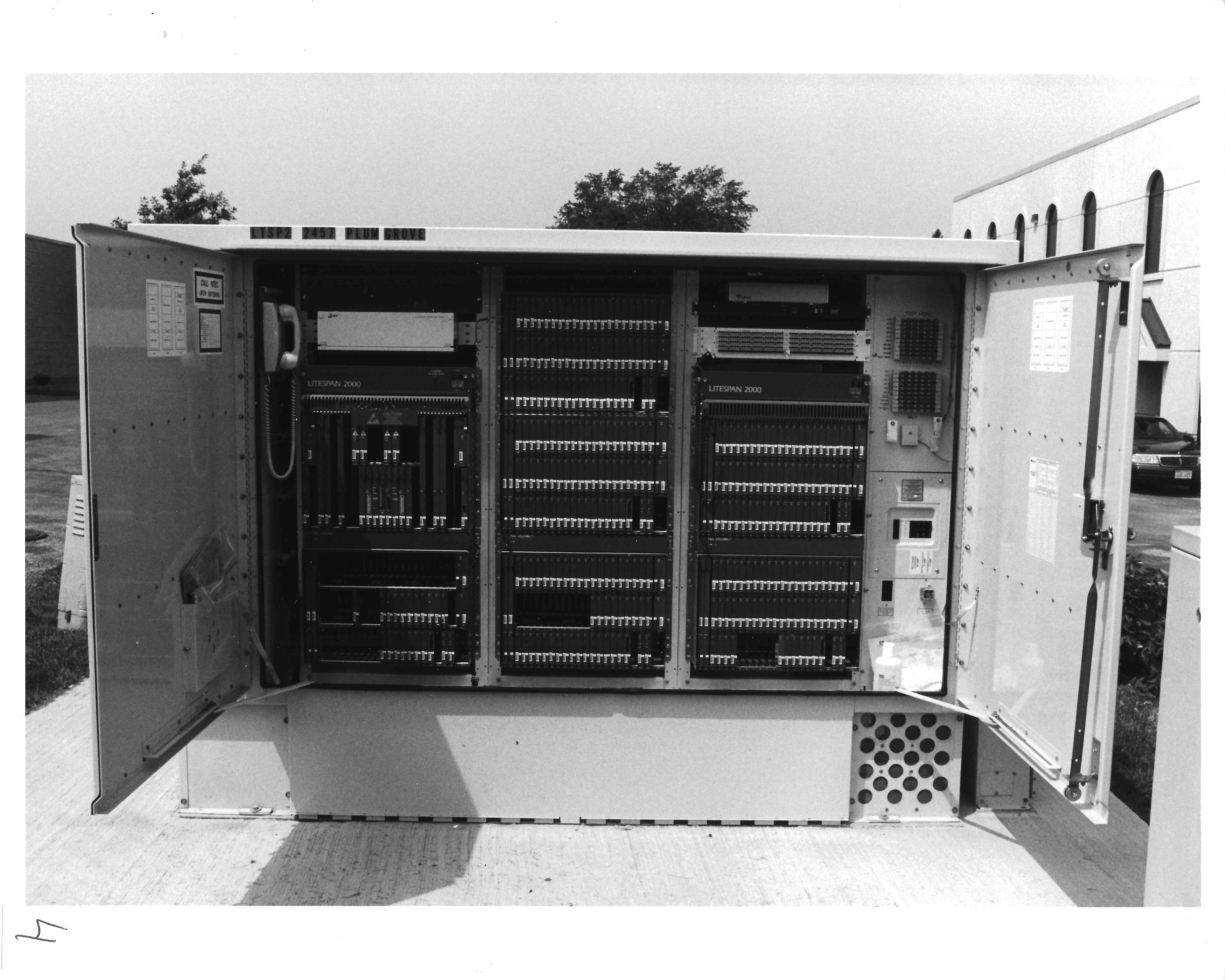 Back of the cabinet with the doors open. This shows the actual Litespan 2000 circuit cards.