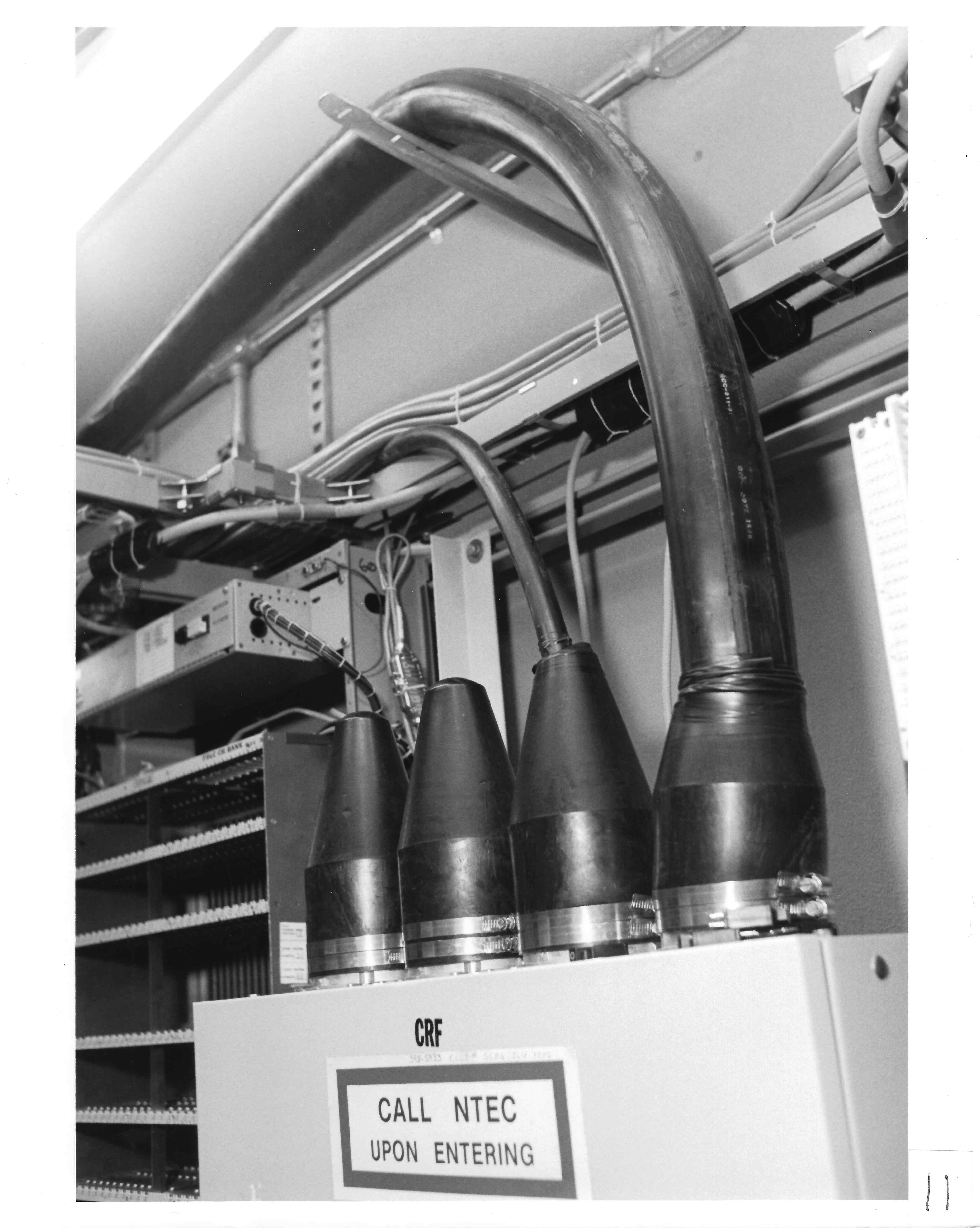 The above splices connect the copper wire pairs to protection equipment located next to the splice chamber. This equipment provides the identical function performed by the same equipment in the above-ground cabinet. It serves to safeguard the vault and personnel working on the equipment from lightning surges and other over voltage situations.