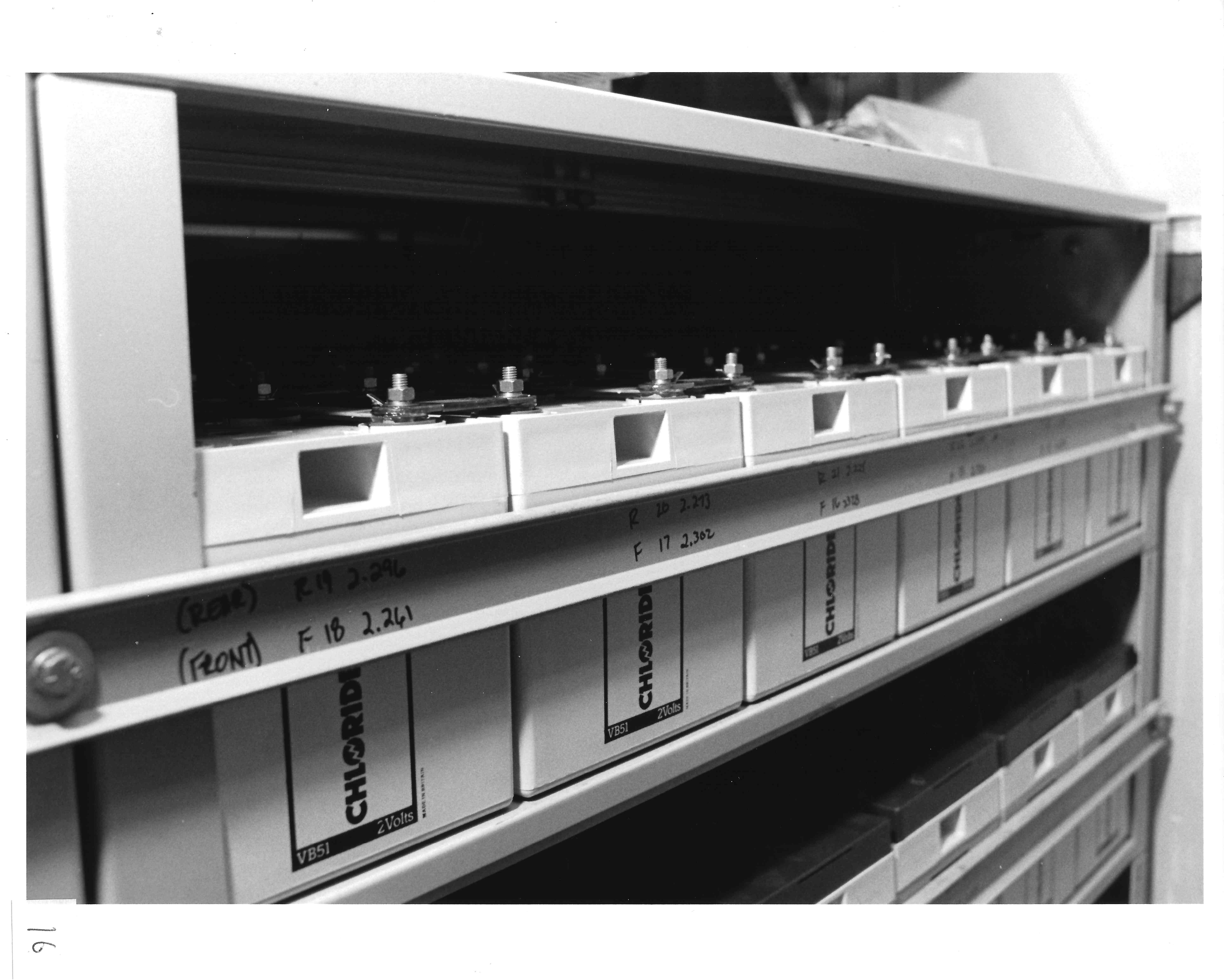 To maintain service in case of commercial power interruption, the CEV also contains banks of batteries to provide stand-by power. If an extended power outage occurs, connections are provided to permit an external generator to be connected to the battery charging equipment.