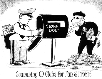 A CD purchased through one of the conventional retail outlets usually costs somewhere between $14 and $18, maybe even more. However, there are many people who have figured out a way to fight back and obtain hundreds, perhaps even thousands of CDs in just a few short months and they paid practically nothing for their collections. This can’t help but cause you to wonder how they do it. These are scammers or mail-order predators. They live on the edge and take a few calculated risks and it is the mail-order CD clubs that are their prey.