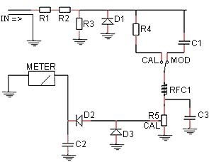 As you can see, this circuit uses an internal dummy load that can only handle about 6W. If you plan on using this meter with more power than that you will need to improve the dummy load, using power resistors or possibly making a jack for an external dummy load/antenna.