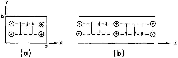 The relative cutoff frequencies for a few modes are shown in Figure 3.26. Both m and n cannot be zero for any mode, because that would require all the fields to be zero. For the same reason, neither m nor n can be zero for the TM modes.