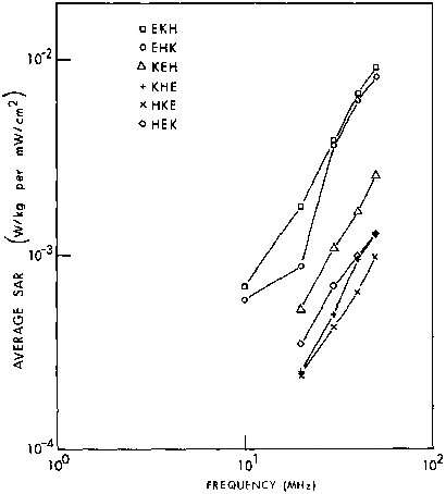 average SAR for a 96-g rat, K polarization.