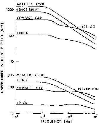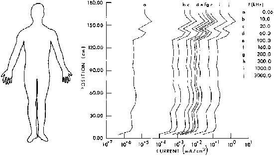man exposed to 1-kv/m VLF-MF fields with feet insulated but hands grounded (Guy and Chou, 1982).