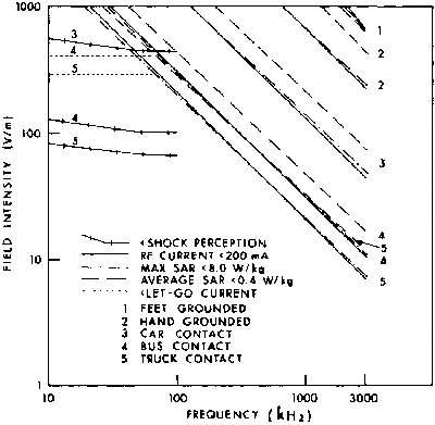 man exposed to 1-kv/m VLF-MF fields in free space (Guy and Chou, 1982).