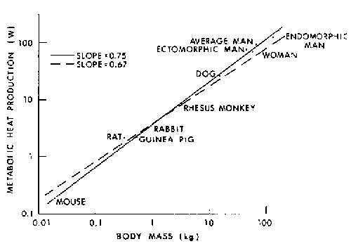 10.4. Logarithm of total metabolic heat production plotted against logarithm of body mass