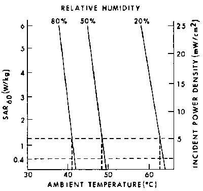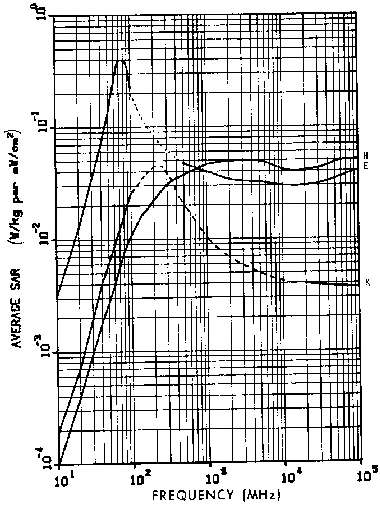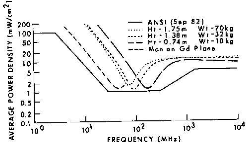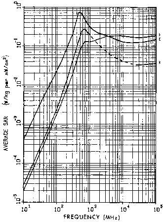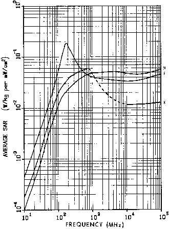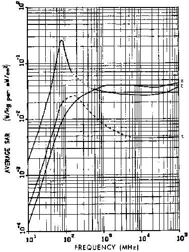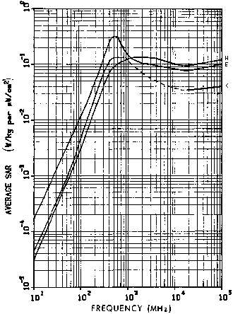 11.4. Power densities that limit human whole-body SAR to 0.4 W/kg for a 1.8-m, 70-kg person