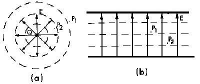 3.13. Potential scalar fields (a) for a point charge and (b) between infinite parallel conducting plates