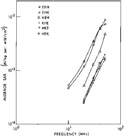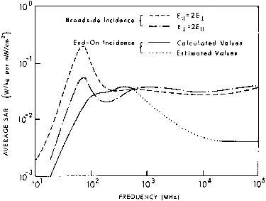 6.3. Calculated planewave average SAR in a prolate spheroidal model of an average man for three polarizations