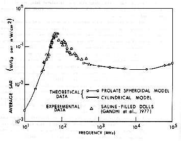 8.19. Measured relative SARs in scaled saline spheroidal models of man
