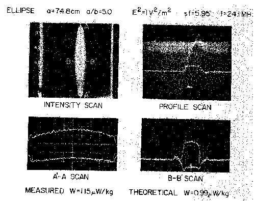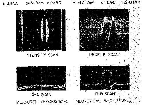 8.35. Scale-model thermograms and calculated peak SAR for 70kg, 5/1 prolate spheroid (a = 74.8 cm) exposed to 24.1- MHz magnetic field perpendicular to the major axis