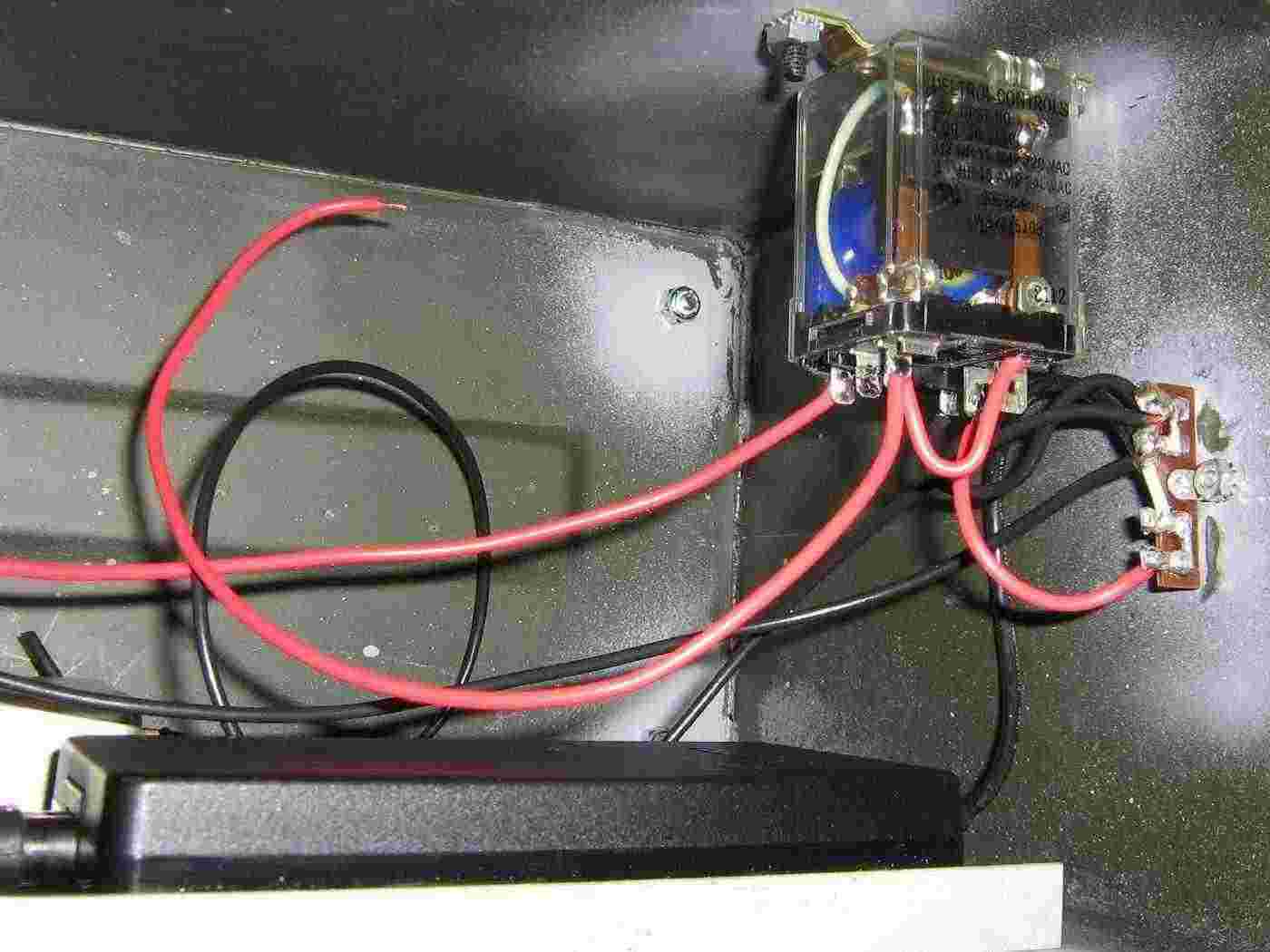 The default position is to power the jammer from a 120 VAC wall-wart power source, but as soon as an external +12 VDC power source is applied, the relay switches over, disconnecting the AC side.