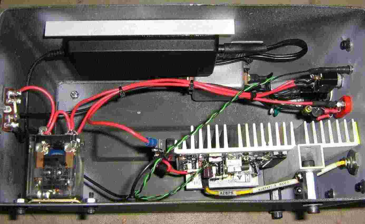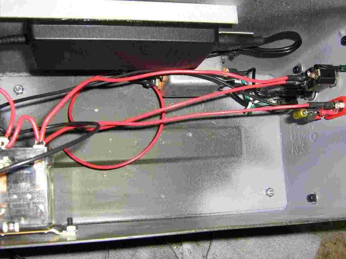 The +15 VDC laptop wall-wart power supply is epoxied to a small piece of aluminum bracket and secured to the side of the case. All the solder connections should be covered with heatshrink tubing for protection.