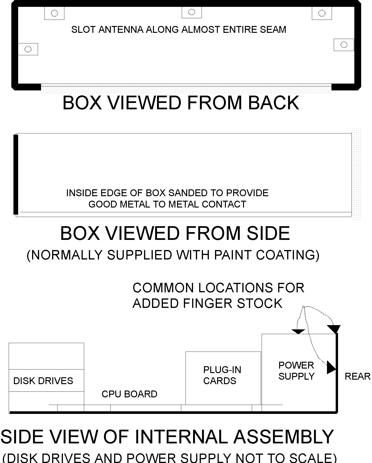 State of the art pc's and workstations commonly contain noise generating sources emitted from circuits operating at clock speeds between 20 and 40 Mhz. While these computing devices are shielded, in a realistic sense, the direct shielding provided by the box walls is usually of less concern than the noise leakage through box seams, holes, and joints. In addition, these shield discontinuities have more effect on magnetic than on electric field leakage.