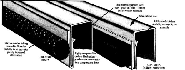 As previously stated, conductive gaskets are used primarily to provide a semi-continuous electrical bond between two metal surfaces along nonuniform seams in enclosures. While silver filled elastomers are the more common gasket material for military hardened applications, knitted wire mesh, soft preformed metal gaskets, and Beryllium copper spring fingers are also commonly used in less stringent computer applications.
