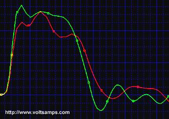 In the simulation I icreased the second to last capacitor value by a factor of approximatly teo to simulate the wire sinking into the epoxy half way twards the end of the PFN.