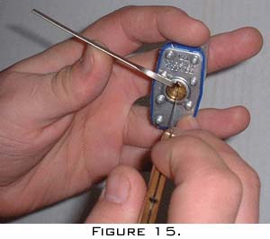 Going back to figure 12 for a sec. If I got out my micrometer and measured each overlap I would notice that the distances away from the cylinder body would not be consistent. What I mean by this is: If I drew a straight line across these columns, the point at which the cylinder holes make contact with the line would not be exactly parallel. This is due to the inherent play between the cylinder and the cylinder body. In order for the cylinder to spin there must be an allowance for movement. When a key ( or something simulating a key ) is inserted and turned there will be side pressure on the cylinder causing it to skew and create this situation.