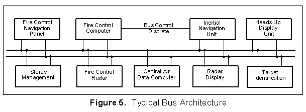 Figure 5 illustrates the 1553B Bus Architecture in a typical aircraft.