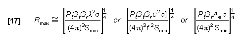As shown in equation [17] S min-1 is proportional to Rmax 4 Therefore, -10 log Smin is proportional to 40 logR max and Table 2 below results: